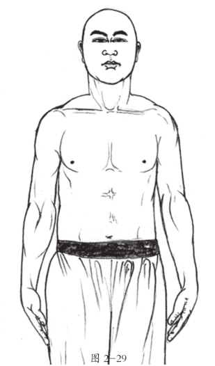 7.两掌根张开,两肘向上分张,指尖相对。(图2-29)