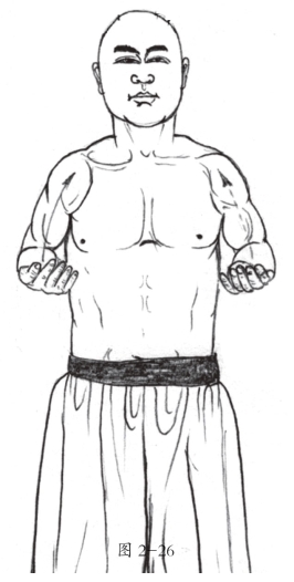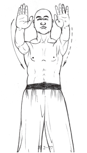 4.接着托举右手,右手动作与左手动作相同,唯方向相反。(图2-25、图2-26)
