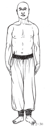 9.反复向上推举3次后,两掌下收胸前成拳;目视前方。(图2-31)