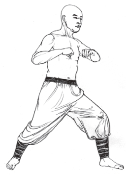 3.回转身,面向正前方,上体正直,左膝屈成左弓步;目视前方。(图2-82)
