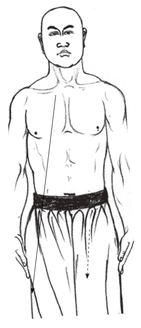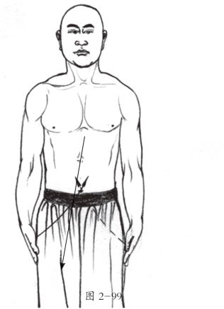 1.身体重心移于左腿,双手抱住右小腿前胫,屈膝收提起,上身正直;目视前方。(图2-98)