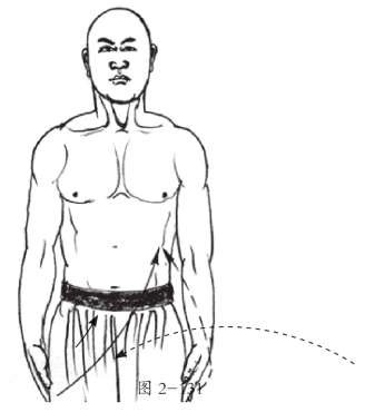 4.一左一右,各做4次后,立身,双拳变掌自然垂于体侧。(图-134)
