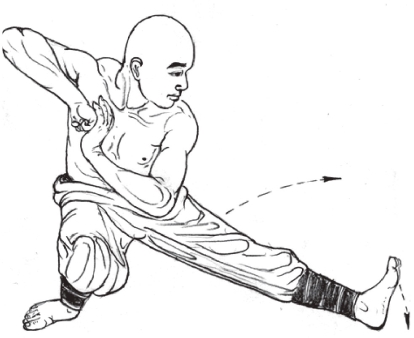 3.接着做右仆步,动作与前势相同,唯方向相反。(图2-133)