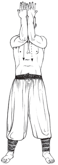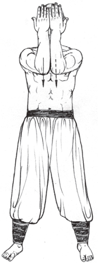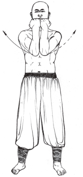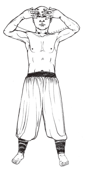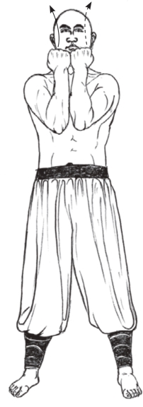 2.两掌一并,捂住颌、面,两掌棱、前臂内侧及肘部相贴,指尖向上,虎口向外。(图3-71)