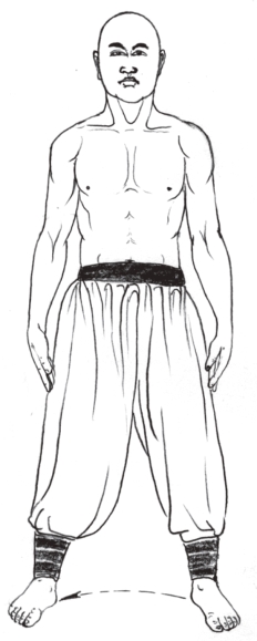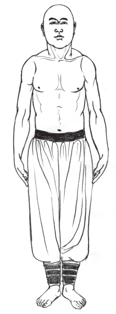 1.立正姿势,两掌自然垂于体侧;呼吸自然,目视前方。(图3-99)