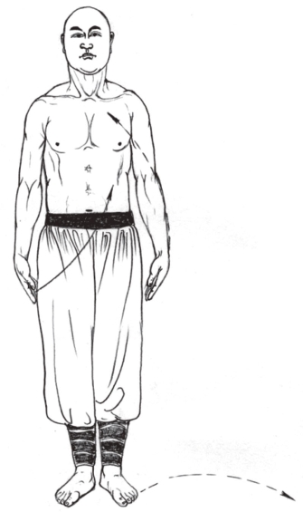 1.立正姿势,两掌自然垂于体侧;呼吸自然,目视前方。(图3-146)