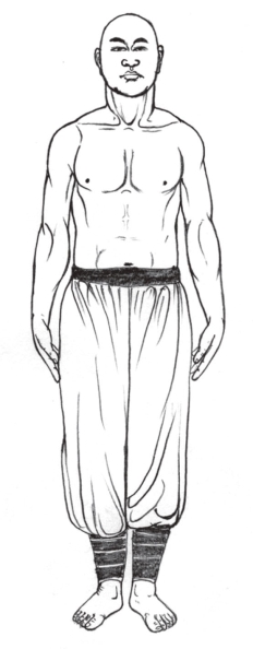 1.立正姿势,两臂自然垂于体侧;呼吸自然,目视前方。(图3-159)