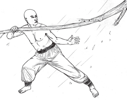 选择较为粗壮的枝干,一手握住枝干梢端,进行横拉、竖拉、下拉的练习。(图4-11)