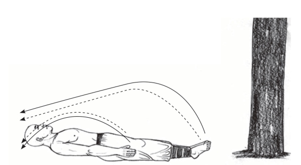 1.接上势,手脚弹力迅速翻身,身体平躺。(图4-52)