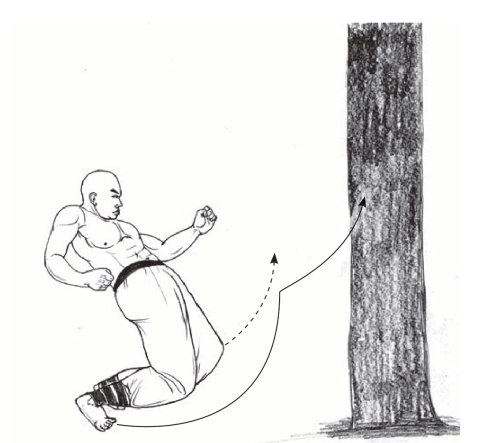 3.双脚迅速向臀下地面收落,借助双手撑劲、腰腹弹力,使上身乘势而起。(图4-54)