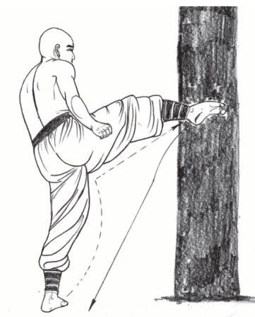 2.右脚收于左脚内侧,左脚收膝正蹬树干,高与腹平。(图4-69)