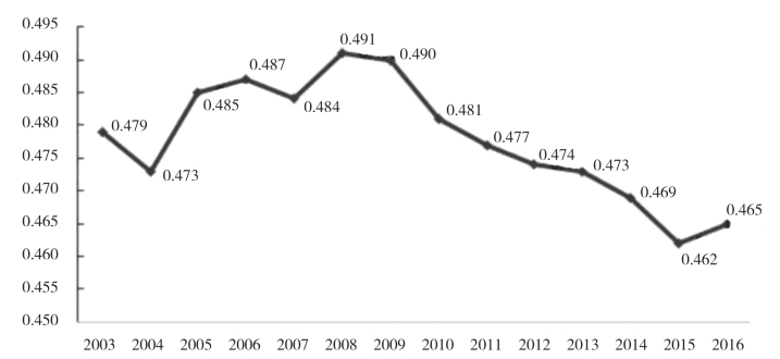 2003—2016年中国居民收入基尼系数