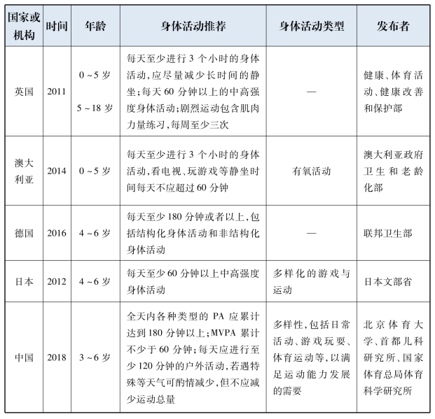 国际上幼儿身体活动指南发展及特点