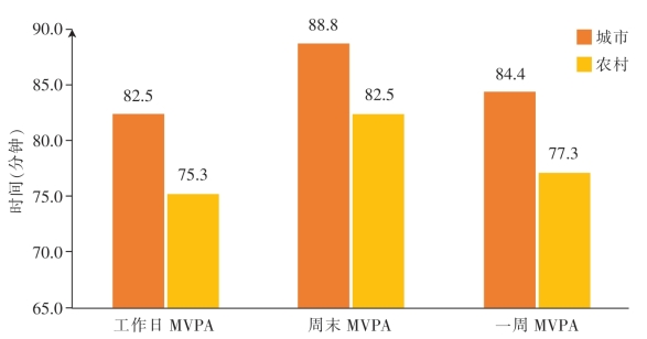 (三)江西省学龄前儿童城乡之间PA和MVPA特征