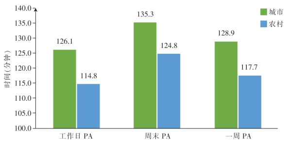 与MVPA相比,城市幼儿在PA时间水平总体水平是显著高于乡村的,说明目前状态下,江西省乡村幼儿总体身体活动水平与城市相比是存在一定差距的。总体来看,江西省学龄前幼儿每天总体活动量与全国相比差距较大,但是幼儿每天的活动强度方面表现较好。