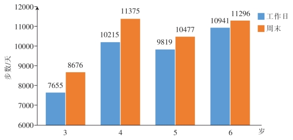 根据上述观点,基于加速度传感器(Acti Graph GT3X-BT)监测的江西省学龄前儿童身体活动特征,学龄前儿童每日步数推荐如图1-13: