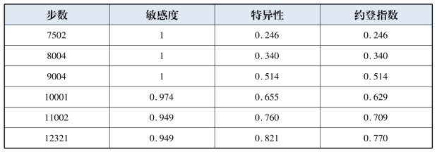 表1-4 学龄前儿童步数与MVPA的ROC分布