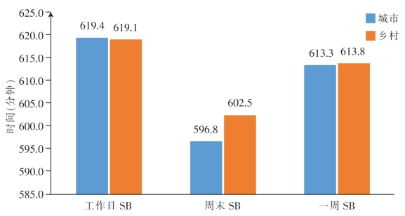 图2-3 江西省学龄前儿童久坐行为时间城乡分布