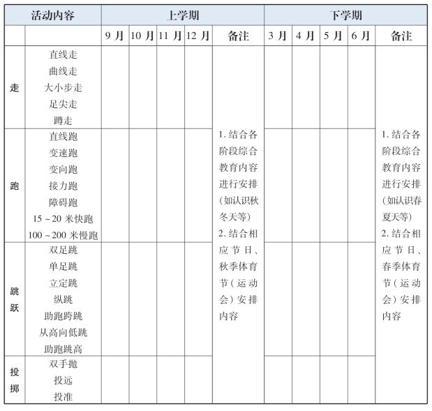 教学形式:安排1~2个活动内容,以教学、指导新内容为主。