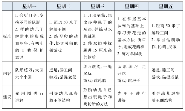 室内体育活动:根据现有设备、条件选择内容和形式(集体、分组、自选、自由结合)。