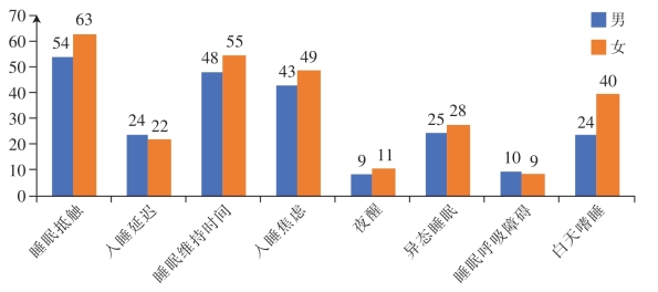 图5-13 睡眠障碍儿童的障碍、性别分布