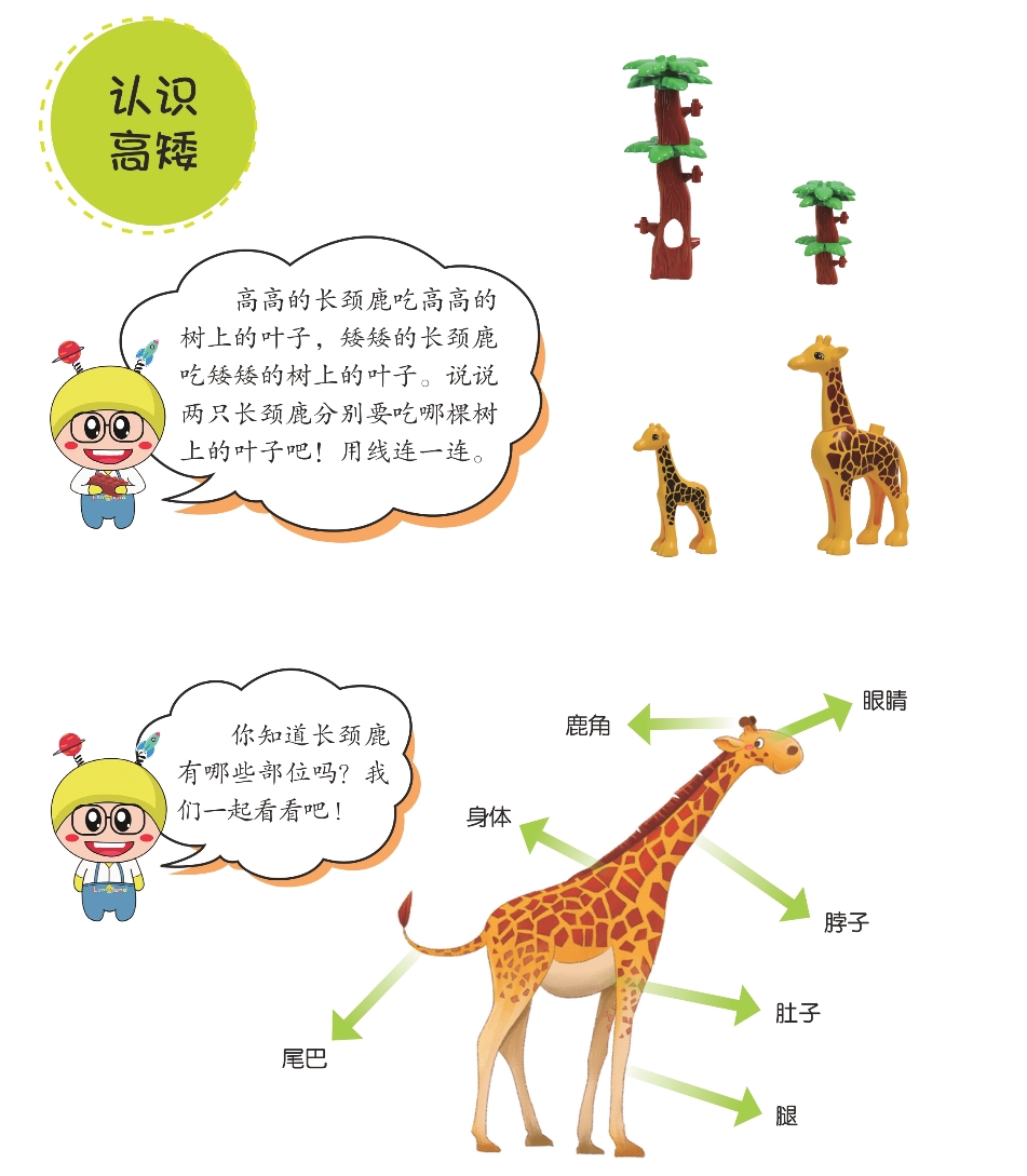 下图有两只长颈鹿,矮矮的是长颈鹿宝宝,高高的是长颈鹿妈妈。请为它们涂上漂亮的颜色,然后和爸爸妈妈一起分享!注意颜色不能涂出轮廓线哦!