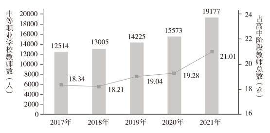 图2-4-2:江西省2017—2021年中等职业学校专任教师数分析图