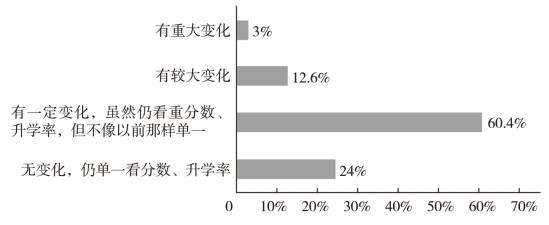(二)家长焦虑总体上有所缓解,但少部分家长焦虑不减反增,社会及家长评价学校“重结果不重过程”的观念无根本变化