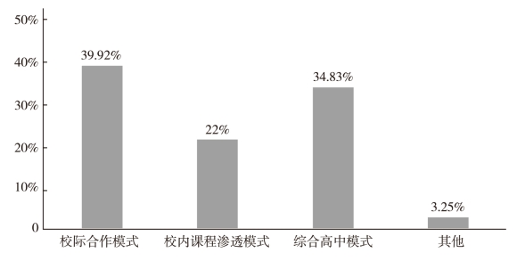 关于普职融合的模式,调查发现,校际合作模式(“两体两翼”模式)是最受推崇的模式(39.92%),其次是综合高中模式(“一体两翼”模式)(34.83%),再次是校内课程渗透模式(“一主一促”模式)(22%)。究其原因,校际合作在实际操作中更为简便,普高与中(高)职学校只需要打通合作通道,各司其职,资源共享,校际共建。综合高中建设则要在现有普高的基础上增加师资、硬件等方面的投入,增加职高课程所必备的教学要素,类似于扩大普高的办学内容,在校内就可做到普高与职高的学生身份互换。校内课程渗透模式,在设计上有一定优势,但这种模式本身就有先天不足,是一种以普高为主、职高为辅的模式,适合于小规模试验性质的普高办学转型探索模式。综上所述,普职合作和综合高中建设是当前普职融合办学的优选模式。