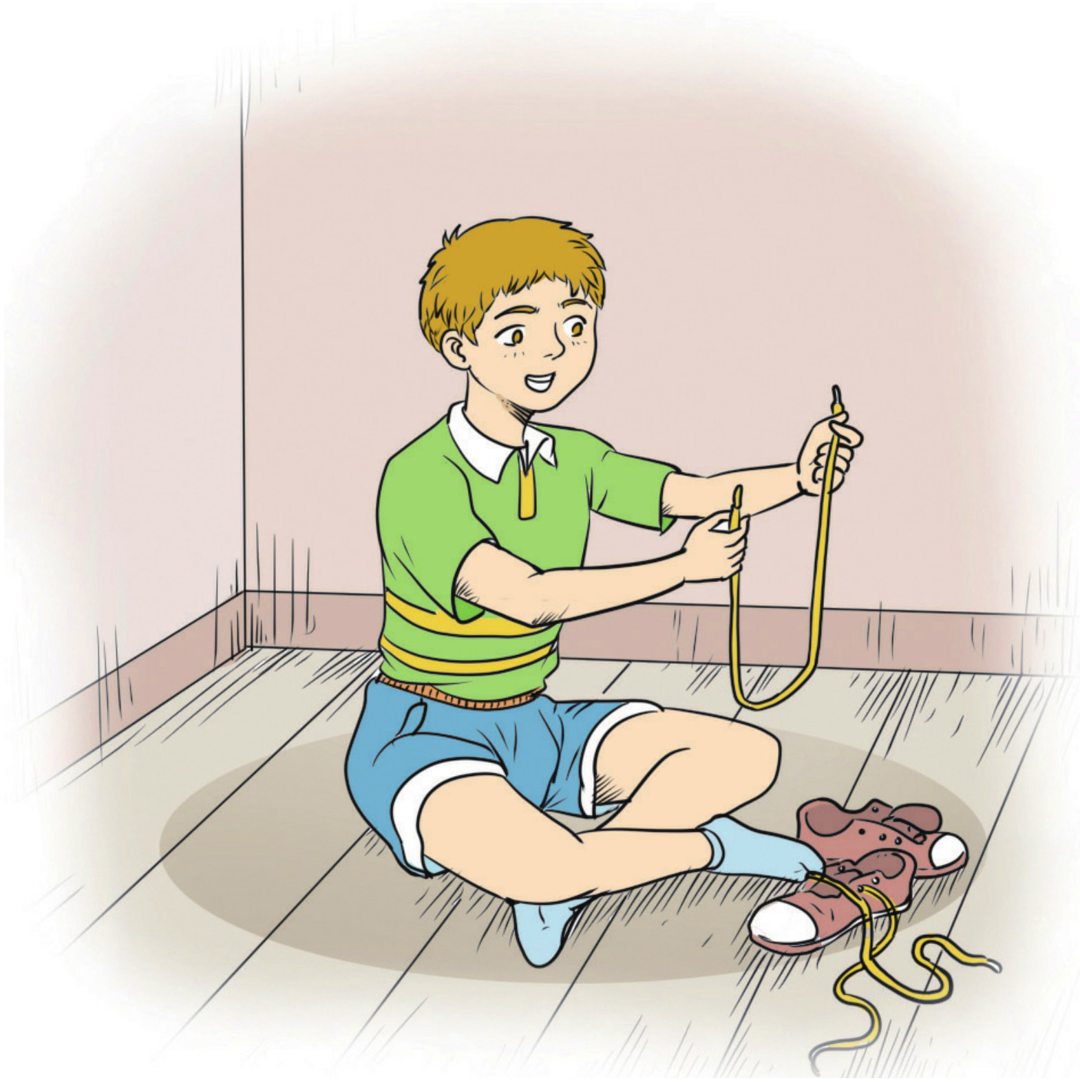 然后,我又想到了另一个方法,可以缩短做类似工作的时间。方法也很简单,就是用鞋带代替短木棍。跟木棍不同的是,鞋带可以很容易地对折成相等的两段。我把两条鞋带的一头接起来,就有了1英尺的长度。接着,我开始了测量。一直到刚才为止,只需要分成两个相等的部分就行了,这很容易做到。但是接下来,就稍微有点儿麻烦了,我需要把它分成相等的3份,不过,我同样做到了。这样,我手中就有了3段4英寸长的鞋带。只要把它对折再对折,就得到1英寸的长度了。