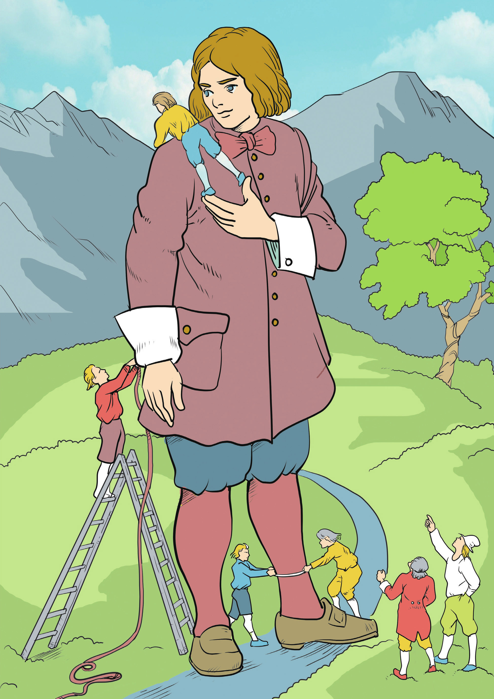 给格列佛制作衣服时,要用到很多布料,在这方面,作者也计算得很准确。格列佛的身体表面积是小人国的人的12×12=144倍。所以,他需要的布料也是小人国人的144倍。作者通过格列佛的叙述,对这些细节进行了描写。格列佛是这么说的:“他们按照当地衣服的样式给我做衣服。而且,为了尽快赶制出来,一共大概有300名裁缝在忙碌着。”