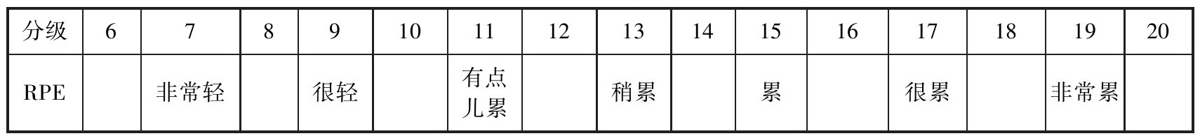③自我感知运动强度(ratings of perclived exertion, RPE)分级。