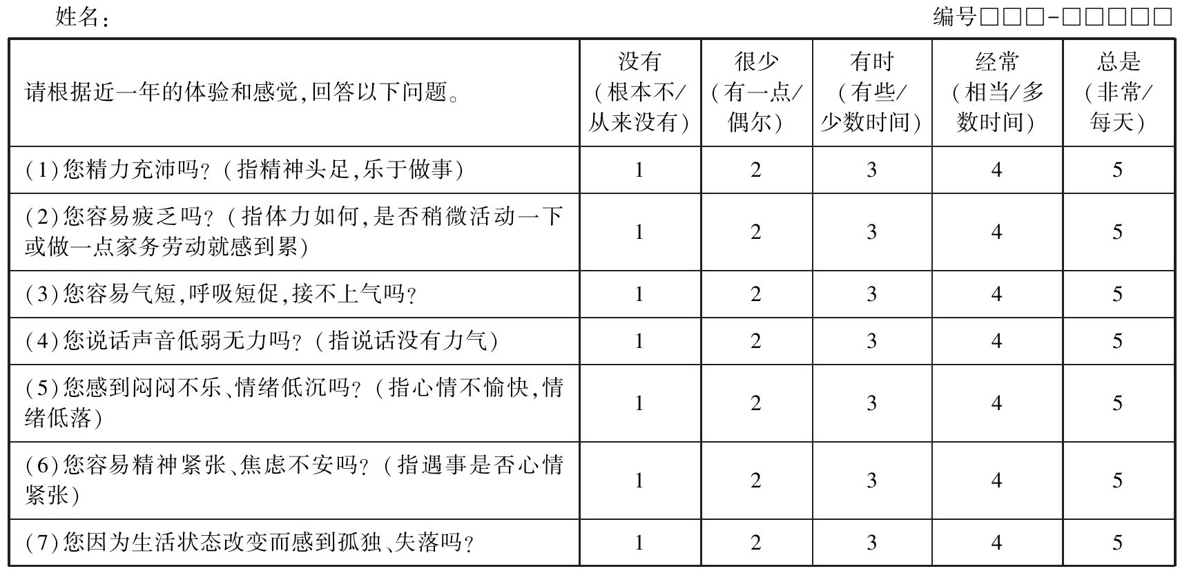 1.该表采集信息时要能够反映老年人近一年来平时的感受,避免采集老年人的即时感受。