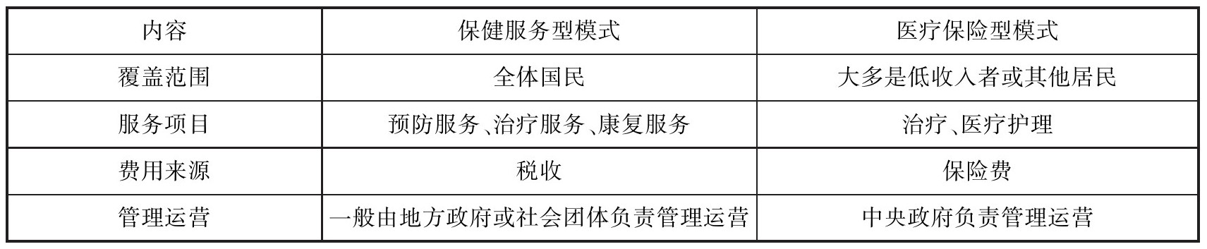 表5-2-4 保健服务型模式与医疗保险模式的差异