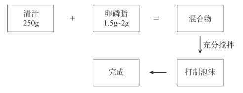 ②在打制泡沫的过程中,装混合物的盒子应倾斜45°,料理棒放置于盒子的底角,高速搅拌,打起泡沫。
