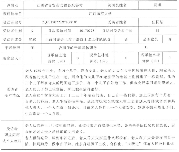 一 受访者基本信息表