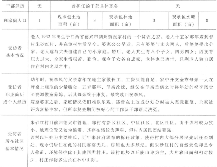 一 受访者基本信息表