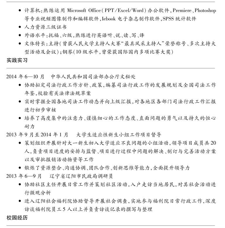 2011年10月至2014年10月 人民大学文法学院学生会文艺部部长、主席