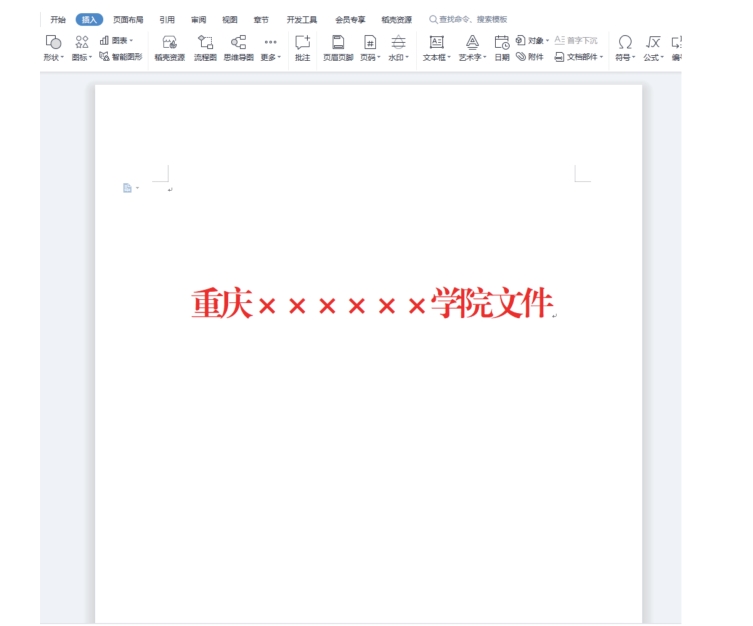 (1)插入一个横排文本框,在文本框内输入发文机关的名称,后加“文件”二字,如“重庆××××××学院文件”。