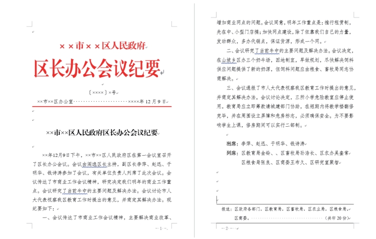 纪要格式参考公文格式的一般红头文件格式的制作方法,所有步骤都先留2页空白页再进行操作。