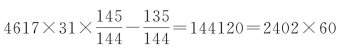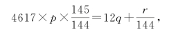 相当于一次同余式4617×145×p≡r(mod 1728),这里p,q为不定正整数,q为岁星运行的圈数。r虽未完全确定,但有个范围135≤r≤139。在此范围内,仅当r=135时,有整数解,且最小正整数解p=31,此时,N=4617×31=143127,恰为《世经》所载三统上元积年数,恰为60的整倍数,故三统上元,按超辰干支纪年,岁名应与太初元年相同,俱为丙子。
