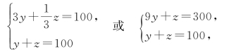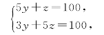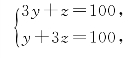 《百鸡术衍》卷上第3题为:“设大物一直三,中物三直五,小物五直一,共物一百,共直一百,问物大中小各几何?”用小数求,列方程为