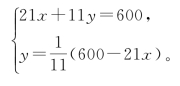 消去z,得11y=200,法除实不尽。此时相当于用消去法将原来的两个方程化为一个二元一次不定方程