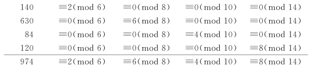 840÷14=60 60≡4(mod 14) →扩大120≡8(mod 14)