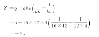 数例二 取有公因数4的两个模a=16,b=12,即有a>b,[a,b]=48。再任取一数89作Z,89=5×16+9=6×12+5,p=9,q=5,v=p-q=9-5=4。把a,b辗转相除,求余数序列:a÷b=16÷12,余4;令c=4。检查知,余数序列c就能整除v=4,因此,括号中取二项,