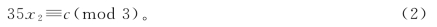 最小正整数解x1=2。系数与模完全相同,常数改取非单位1的c=5×7=35,形成同余式: