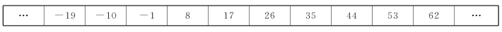 现在试对z≡17(mod 9),把关于模9与余数17同余的许多数列出如下: