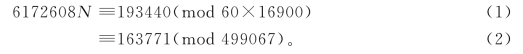 进一步,代入(2)式,6172608N≡163771(mod 499067),得