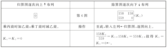 表中的方向符号↑、↓或←,指各图演算后的去向。