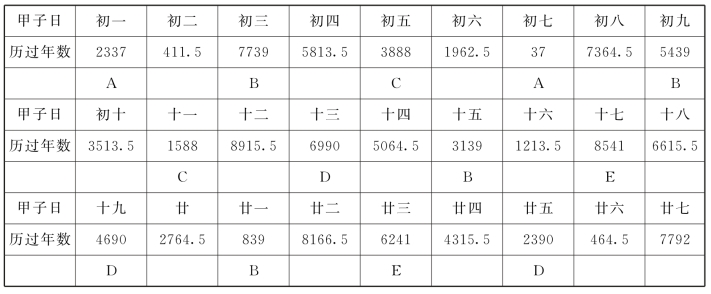 表14.9 甲子后移情况全景
